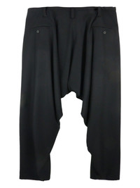 drop-crotch wool trousers Yohji Yamamoto applies its eye for innovative tailoring to design these black wool trousers. They fuse smart front pleats with a drop crotch that creates a fluid drape through the legs. Highlights - Black - Wool - Pleat detailing - Belt loops - Front button fastening - Drop crotch - Wide leg - Two front jetted pockets - Two rear button-fastening jetted pockets - Straight hem Imported Composition Wool 100%