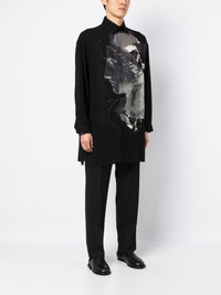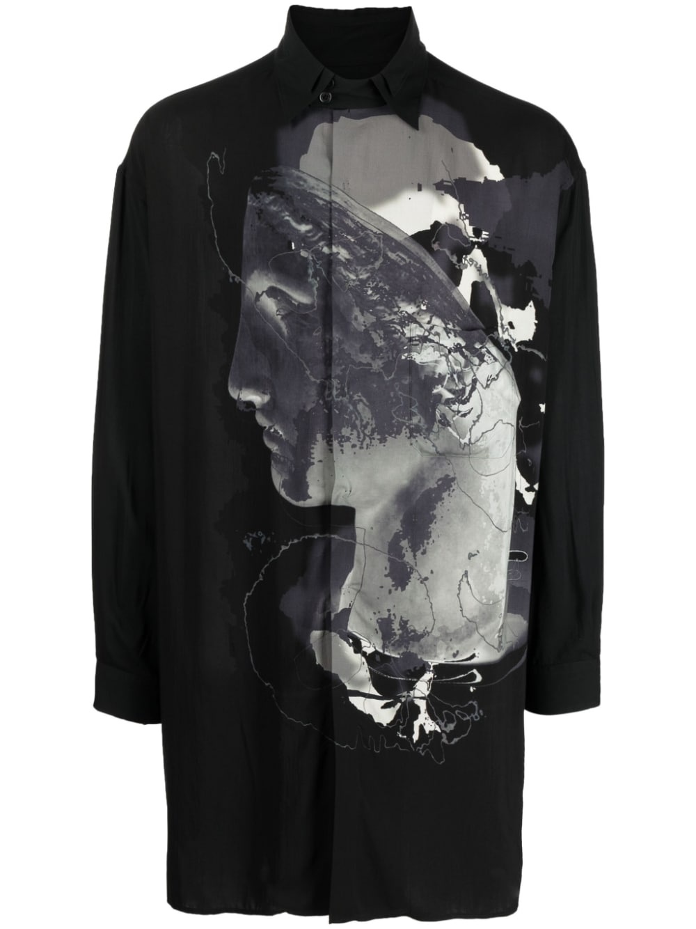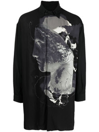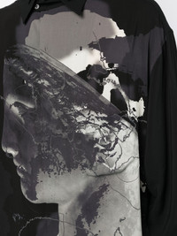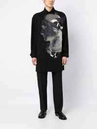 graphic-print long-sleeve shirt black graphic print to the front classic collar concealed front fastening chest patch pocket long sleeves buttoned cuffs straight hem Imported Composition Rayon 100% SIZE & FIT Model measurements Height 6 ft 2 in(1.87 m) Bust/Chest 34.25 in(87 cm) Hips 36.22 in(92 cm) Waist 29.52 in(75 cm) FittingInformation This piece fits true to size. We recommend you get your regular size Cut for a loose fit Made with a mid-weight fabric