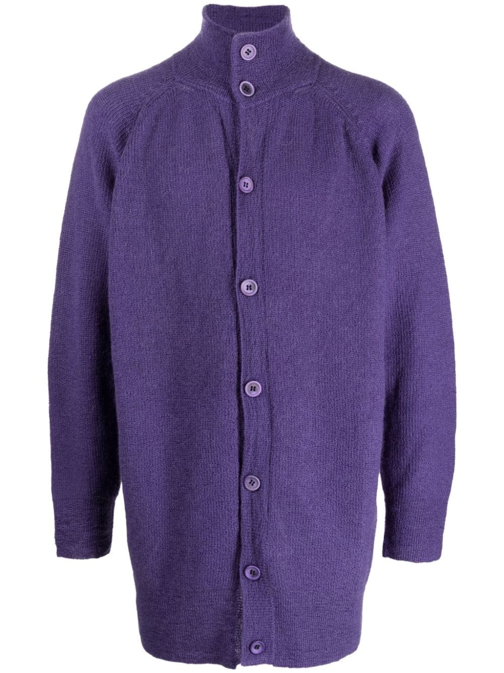 high-neck button-up cardigan Highlights - Purple - Wool-mohair blend - Knitted construction - High neck - Front button fastening - Long raglan sleeves - Straight hem Imported Composition Wool 50%, Mohair 50% SIZE & FIT Model measurements Height 6 ft 2 in(1.87 m) Bust/Chest 36.41 in(92.5 cm) Hips 37 in(94 cm) Waist 29.52 in(75 cm) FittingInformation Designed for a relaxed fit, this piece allows for comfort and movement when worn Made with a midweight knit, this piece offers some stretch This piece fits true to size – take your usual size Washing instructions Dry Clean Only