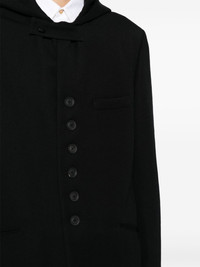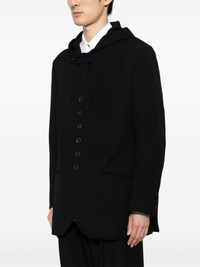 hooded wool jacket Highlights - Black - Wool - Front button fastening - Classic hood - Notched lapels - Chest welt pocket - Long sleeves - Buttoned cuffs - Two side slit pockets - Internal pocket - Full lining - Straight hem Imported Composition Outer: Wool 100% Lining: Cupro 100% SIZE & FIT Model measurements Height 6 ft 2 in(1.87 m) Bust/Chest 34.25 in(87 cm) Hips 36.22 in(92 cm) Waist 29.52 in(75 cm) FittingInformation Designed to be unstructured, offering a loose fit throughout Made from a midweight non-stretch fabric