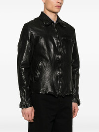 leather jacket Highlights - Black - Front two-way zip fastening - Zip-fastening chest pocket - Internal pocket - Cuff zips Imported Composition Lining: Rayon 100% Outer: Calf Leather 100% SIZE & FIT Model measurements Height 6 ft 1 in(1.85 m) Bust/Chest 35.82 in(91 cm) Hips 37.79 in(96 cm) Waist 29.13 in(74 cm) FittingInformation Designed for a slim fit, offering a comfortable fit that sits just away from the body Firm leather offering little flexibility to maintain its durability and sturdiness Washing instructions Specialist Cleaning