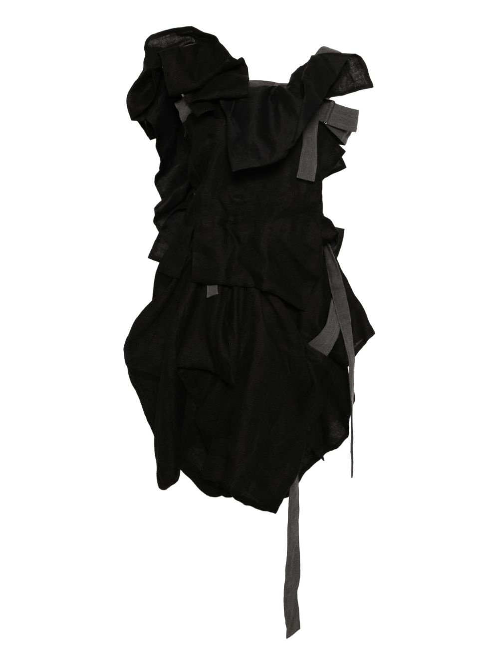 linen draped dress Highlights - Black - Open front - Draped design Imported Composition Linen/Flax 100% SIZE & FIT Model measurements Height 5 ft 9 in(1.76 m) Bust/Chest 31.1 in(79 cm) Hips 35.03 in(89 cm) Waist 24.4 in(62 cm) FittingInformation Designed for a slim fit that sits just away from the body offering a close yet comfortable fit The belt offers adjustability for fitted preferences Made from a midweight non-stretch fabric Washing instructions Dry Clean Only