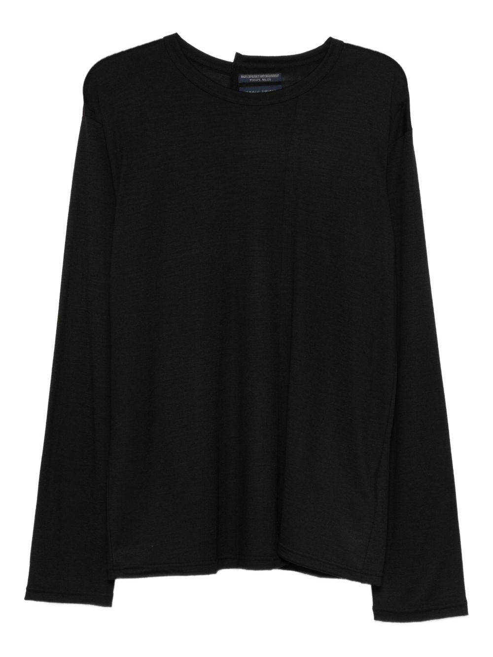 long-sleeve wool T-shirt Highlights Imported Composition Virgin Wool 100% SIZE & FIT Model measurements Height 6 ft 0 in(1.84 m) Bust/Chest 37.79 in(96 cm) Hips 37 in(94 cm) Waist 31.49 in(80 cm)