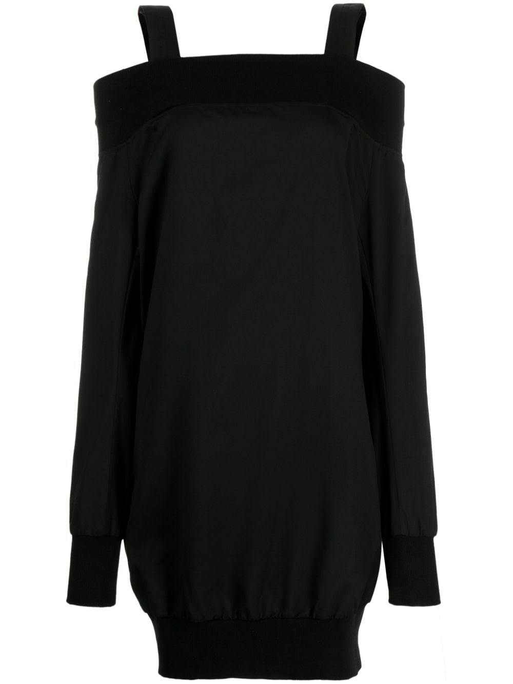 long-sleeved wool dress Highlights - Jet black - Wool - Tonal stitching - Square neck - Open-shoulder sleeves - Extra-long sleeves - Ribbed hem - Above-knee length Imported Composition Body: Wool 100% Trims: Cotton 55%, Celluloid 42%, Polyurethane 3% SIZE & FIT Model measurements Height 5 ft 10 in(1.78 m) Bust/Chest 30.31 in(77 cm) Hips 34.64 in(88 cm) Waist 24.01 in(61 cm) FittingInformation Designed to be unstructured, offering a loose fit throughout The adjustable shoulder straps allow for a preferred fit when worn Made from a midweight non-stretch fabric This piece fits true to size – take your usual size Washing instructions Dry Clean Only