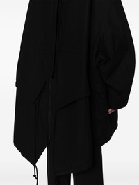 Military Backside Mods coat Highlights - Black - Wool/cotton - Satin weave - Classic collar - Concealed front zip fastening - Drop shoulder - Long sleeves - Buttoned cuffs - Two front flap pockets - Rear slit - Asymmetric hem - Drawstring hem Imported Composition Body: Cotton 100% Filling: Polyester 100% Outer: Wool 100% SIZE & FIT Model measurements Height 5 ft 10 in(1.77 m) Bust/Chest 31.49 in(80 cm) Hips 35.43 in(90 cm) Waist 25.19 in(64 cm) FittingInformation Designed for an oversized fit, offering additional room throughout The adjustable drawstring means that you can adjust this piece’s fit to suit your comfort and preference Made from a heavyweight non-stretch fabric This piece fits true to size – take your usual size Washing instructions Dry Clean Only