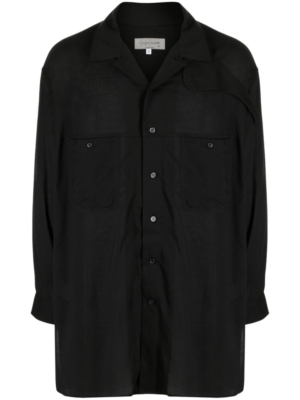 notched-collar button-up shirt Highlights - Black - Notched collar - Front button fastening - Two front patch pockets - Long sleeves - Straight hem Imported Composition Cellulose Acetate 100% SIZE & FIT Model measurements Height 6 ft 2 in(1.87 m) Bust/Chest 31.49 in(80 cm) Hips 37.79 in(96 cm) Waist 27.95 in(71 cm) FittingInformation Designed to be unstructured, offering a loose fit throughout Made from a lightweight non-stretch fabric This piece fits true to size – take your usual size Washing instructions Dry Clean Only