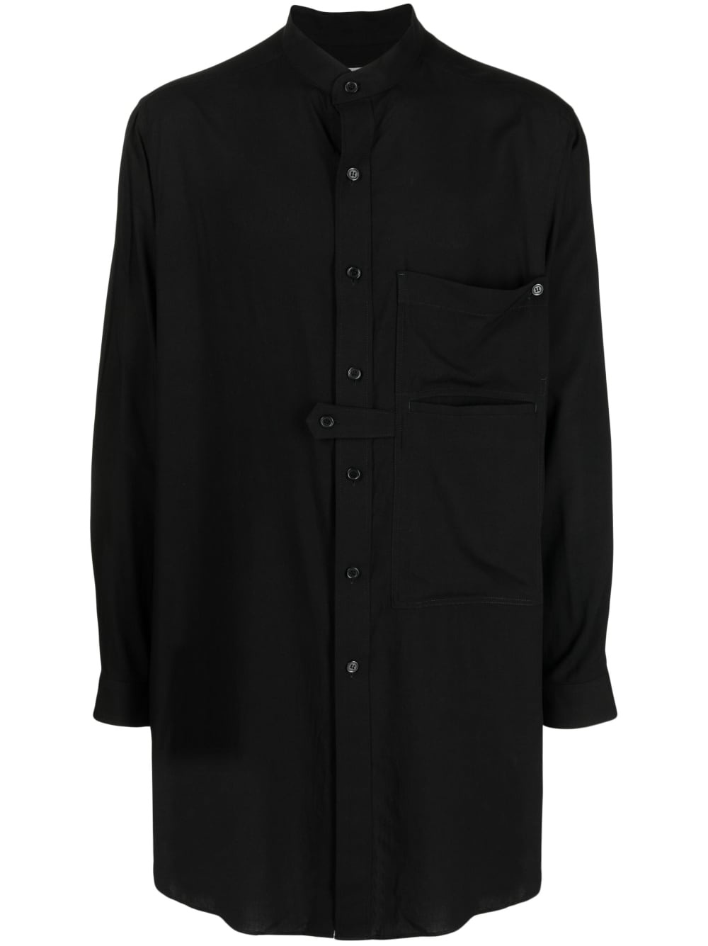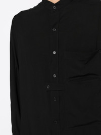 oversized long-sleeve shirt black band collar front button fastening two chest welt pockets chest patch pocket long sleeves buttoned cuffs straight hem Imported Composition Rayon 100% SIZE & FIT Model measurements Height 6 ft 2 in(1.87 m) Bust/Chest 34.25 in(87 cm) Hips 36.22 in(92 cm) Waist 29.52 in(75 cm) FittingInformation This piece fits true to size. We recommend you get your regular size Cut for a loose fit Made with a mid-weight fabric