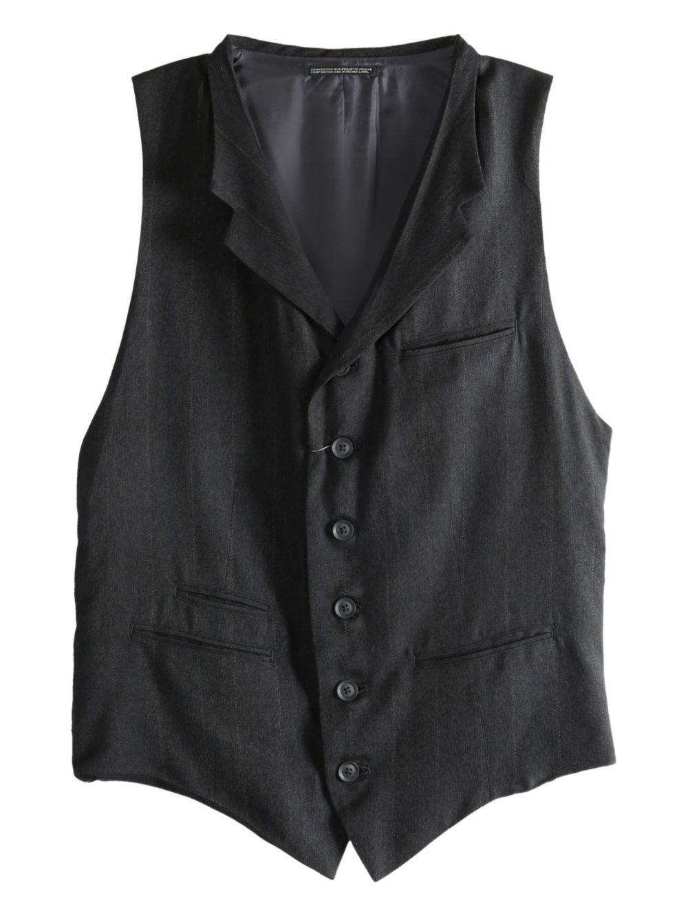 pinstripe button-up vest Highlights - Black - Pinstripe pattern - Button fastening - Notched lapels - Front welt pockets - Quilted back panel Imported Composition Viscose 100% Washing instructions Read Manufacturer Guidelines