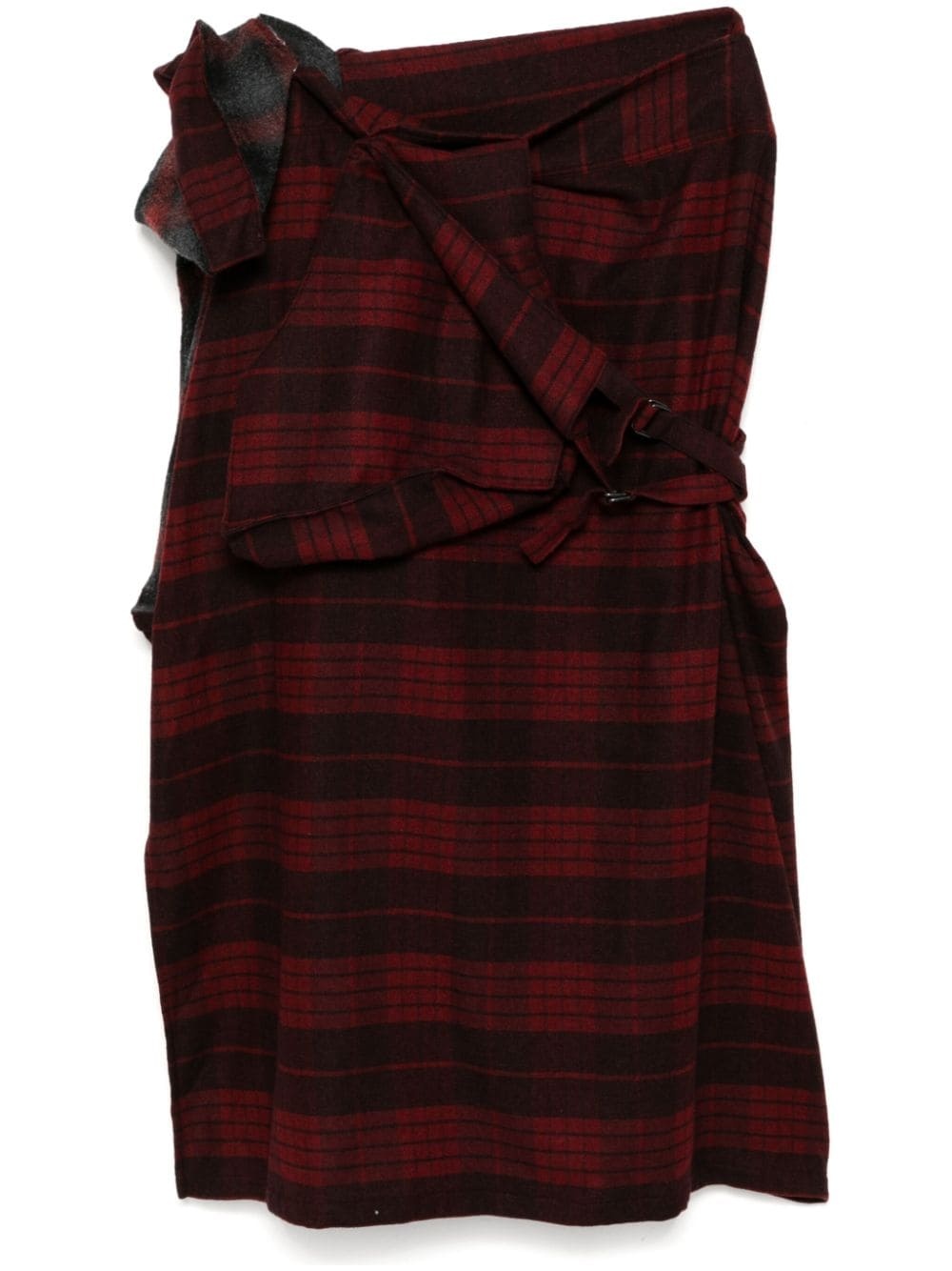 plaid asymmetric skirt Highlights - Dark red/grey - Wool blend - Flannel - Rear button fastening - Plaid check pattern - Decorative buckle detailing - Draped design - Asymmetric design - Rear slit - Asymmetric hem - Ankle-length Imported Composition Wool 70%, Nylon 10%, Acrylic 10%, Polyester 10%