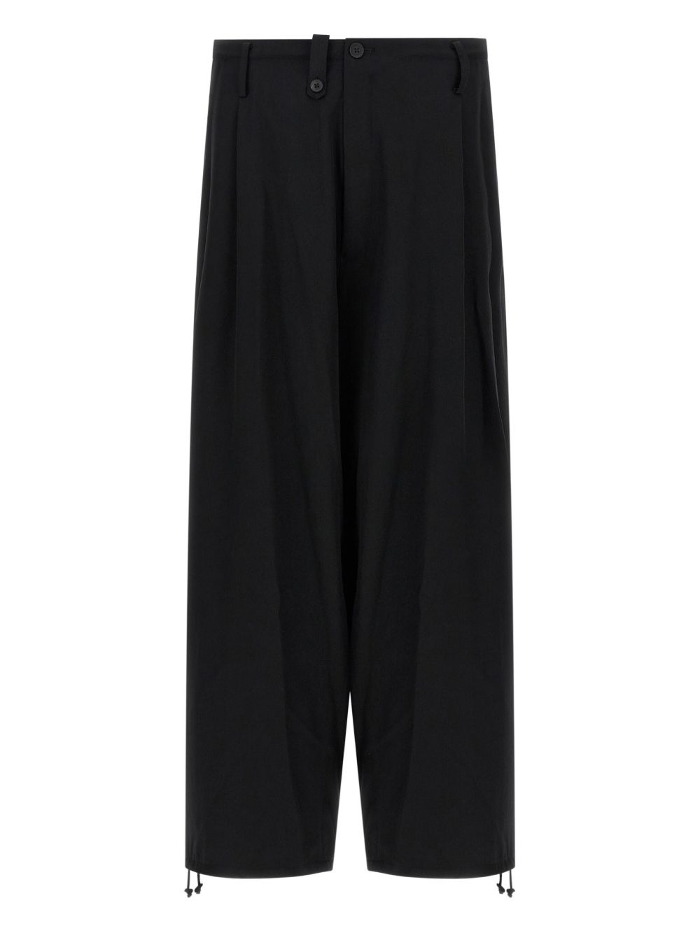 pleated drawstring trousers Highlights - Black - Pleated design - Drawstring fastening - Button closure - Front pockets - Drawstring leg hems Imported Composition Wool 100% Washing instructions Read Manufacturer Guidelines
