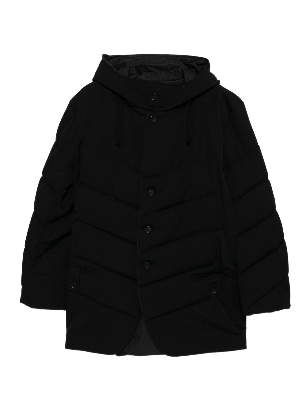 puffer jacket Highlights - Black - Front button fastening - Slouchy drawstring hood - Two front welt pockets Imported Composition Outer: Wool 100% Filling: Polyester 100% SIZE & FIT Model measurements Height 6 ft 2 in(1.88 m) Bust/Chest 32.28 in(82 cm) Hips 35.43 in(90 cm) Waist 27.95 in(71 cm) FittingInformation Designed for a relaxed fit, this piece allows for comfort and movement when worn Made from a quilted non-stretch fabric, giving it no natural elasticity Washing instructions Dry Clean Only