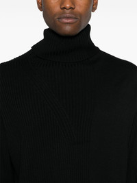 ribbed-knit sweater Highlights - Black - Wool - Ribbed knit - Turtleneck - Drop shoulder - Long sleeves - Thigh-length - Straight hem Imported Composition Wool 100% SIZE & FIT Model measurements Height 6 ft 2 in(1.88 m) Bust/Chest 36.61 in(93 cm) Hips 35.82 in(91 cm) Waist 27.95 in(71 cm) FittingInformation Designed to be unstructured, offering a loose fit throughout Made with a midweight knit, this piece offers some stretch This piece fits true to size – take your usual size