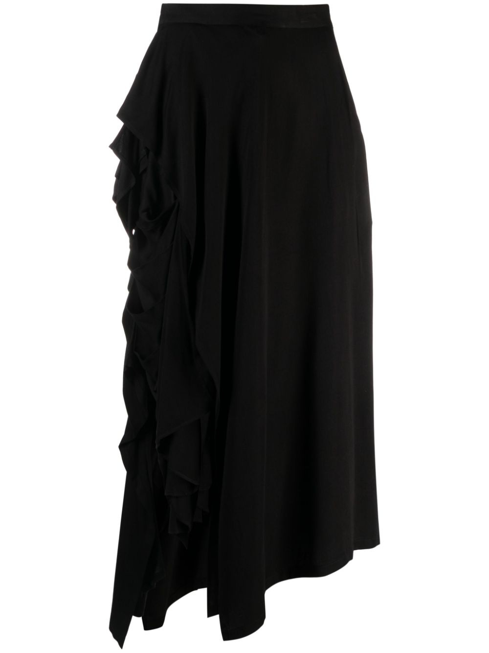 ruffled-detail asymmetric maxi skirt Highlights - Black - Asymmetric design - Draped design - Pleat detailing - Ruffled detailing - High-waisted - Elasticated waistband - Side slit - Ankle-length - Asymmetric hem Imported Composition Rayon 100% SIZE & FIT Model measurements Height 5 ft 10 in(1.78 m) Bust/Chest 29.92 in(76 cm) Hips 34.64 in(88 cm) Waist 23.62 in(60 cm) Washing instructions Dry Clean Only