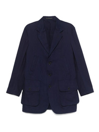 single-breasted blazer Highlights - Navy blue - Front button fastening - Two side welt pockets - Two side flap pockets - American rear vent Imported Composition Outer: Cotton 55%, Linen/Flax 45% Lining: Cupro 100% SIZE & FIT Model measurements Height 6 ft 2 in(1.87 m) Bust/Chest 38.97 in(99 cm) Hips 37.99 in(96.5 cm) Waist 29.52 in(75 cm) FittingInformation Designed for a slim fit, offering a comfortable fit that sits just away from the body The vented hem offers movement at the rear Made from a midweight non-stretch fabric