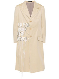 slogan patch single-breasted blazer Highlights - Beige/white/black - Cotton - Front button fastening - Notched lapels - Decorative belt detailing - Chest welt pocket - Long sleeves - Buttoned cuffs - Slogan patch to the front - Slogan patch to the rear - Frayed detailing - Two side flap pockets - Central rear vent - Calf-length Imported Composition Outer: Cotton 100% Lining: Cotton 100% SIZE & FIT Model measurements Height 6 ft 2 in(1.88 m) Bust/Chest 34.25 in(87 cm) Hips 34.64 in(88 cm) Waist 26.77 in(68 cm) FittingInformation Designed to be unstructured, offering a loose fit throughout Made from a midweight non-stretch fabric
