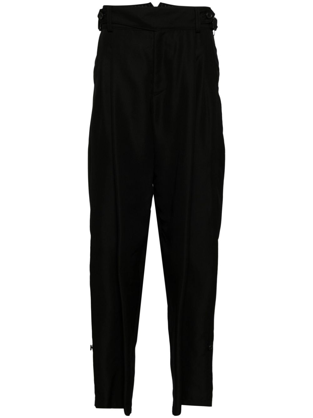 silk trousers Highlights - Black - Concealed front fastening - Two side slash pockets - Rear button-fastening pocket - Adjustable waist strap Imported Composition Outer: Silk 100% Lining: Cupro 100% SIZE & FIT Model measurements Height 6 ft 2 in(1.88 m) Bust/Chest 34.25 in(87 cm) Hips 34.64 in(88 cm) Waist 26.77 in(68 cm) FittingInformation Designed for a tapered leg, offering a loose unrestricted fit over the leg with a closer fit towards the ankle The adjustable tabs allow for fitted preferences Made from a midweight non-stretch fabric, this piece offers minimal elasticity when worn