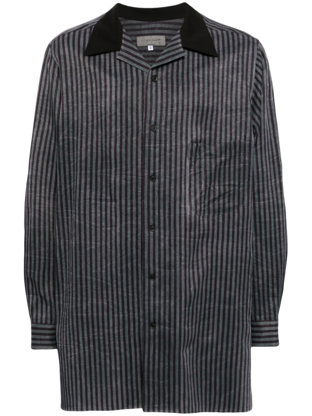 striped open-collar shirt Highlights - Black - Crease effect - Vertical stripe pattern - Cuban collar - Front button fastening - Long sleeves - Buttoned cuffs - Chest patch pocket - Side slits - High-low hem Imported Composition Cupro 100% SIZE & FIT Model measurements Height 6 ft 1 in(1.85 m) Bust/Chest 35.43 in(90 cm) Hips 36.22 in(92 cm) Waist 28.74 in(73 cm) FittingInformation Designed to be unstructured, offering a loose fit throughout Made from a lightweight non-stretch fabric