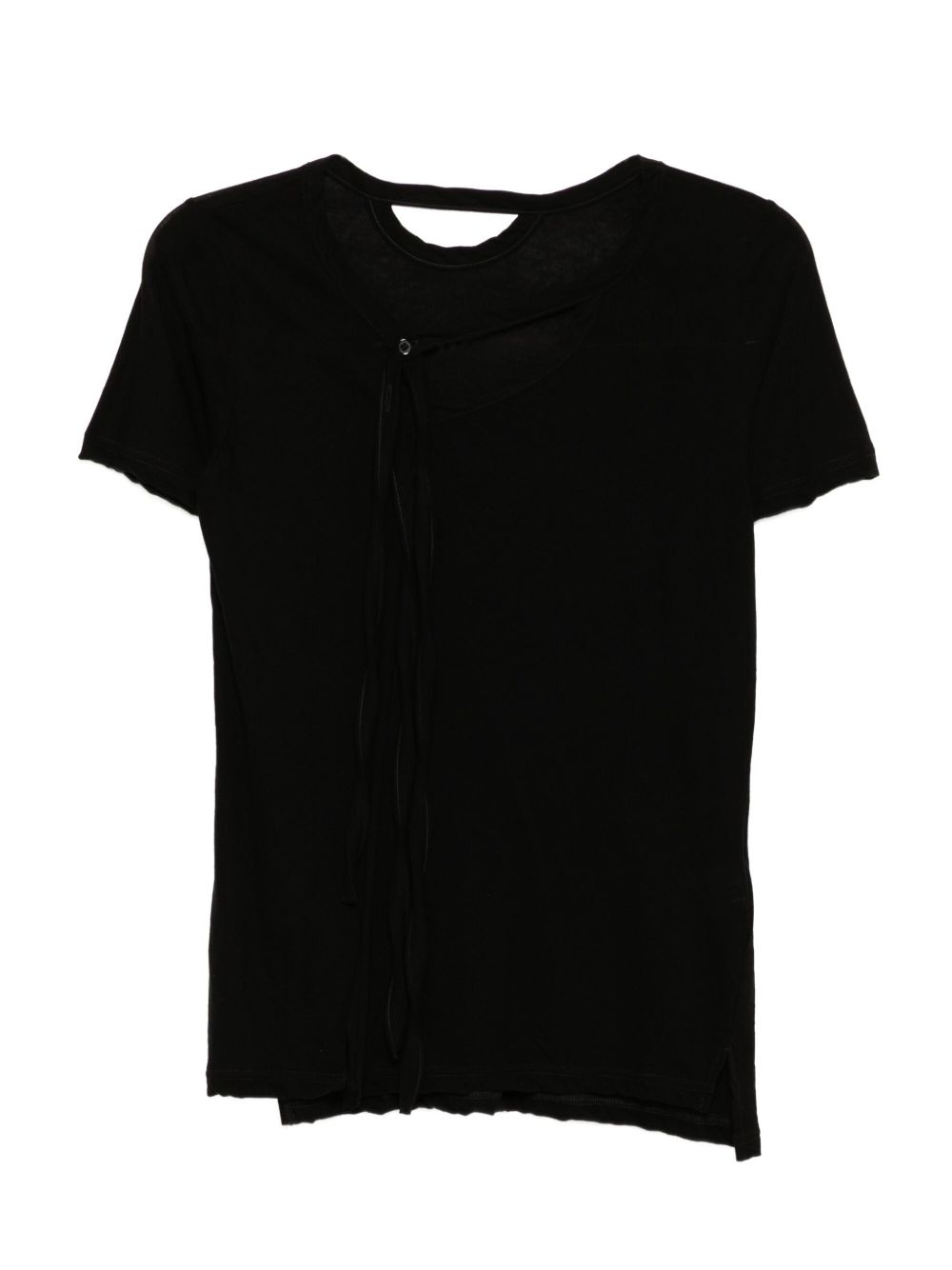 tie-detailing cotton T-shirt Highlights - Black - Round neck - Draped detailing Imported Composition Cotton 100% SIZE & FIT Model measurements Height 5 ft 9 in(1.76 m) Bust/Chest 31.1 in(79 cm) Hips 35.03 in(89 cm) Waist 24.4 in(62 cm) FittingInformation Designed for a slim fit that sits just away from the body offering a close yet comfortable fit Made from a lightweight non-stretch fabric, this piece offers minimal elasticity when worn Washing instructions Dry Clean Only