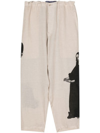 U-Lady print tapered trousers Highlights - Ecru - Linen/flax - Elasticated waistband - Belt loops - Two side inset pockets - All-over u-lady print - Two rear welt pockets - Tapered leg - Concealed fly and button fastening Imported Composition Lining: Cupro 100% Outer: Linen/Flax 100%