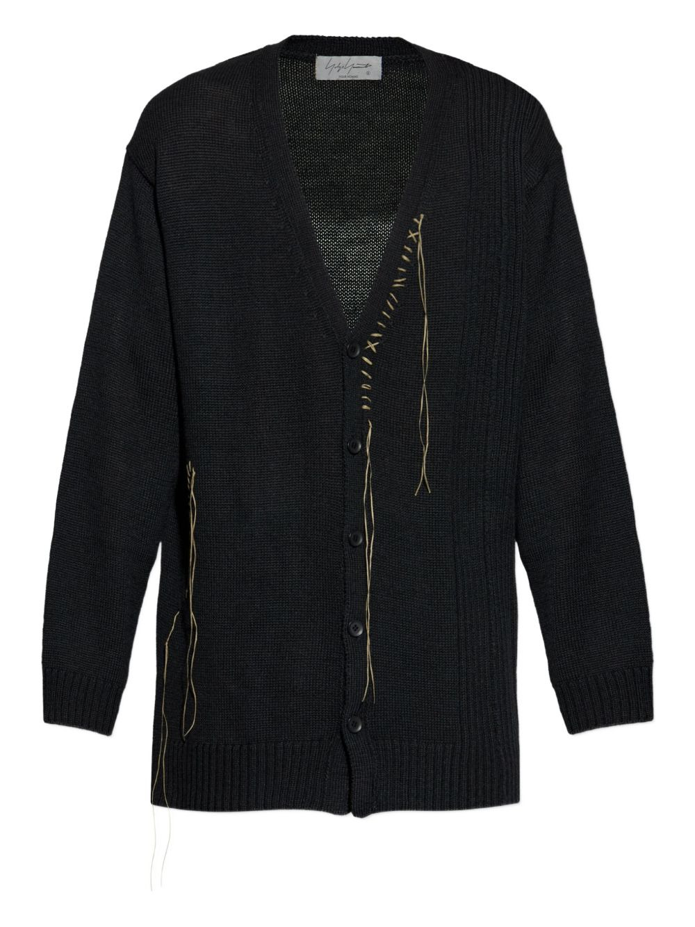 V-neck wool cardigan Highlights - Black - Wool - V-neck - Front button fastening - Thread detail Imported Composition Wool 100% Washing instructions Read Manufacturer Guidelines