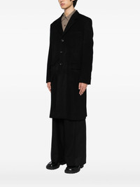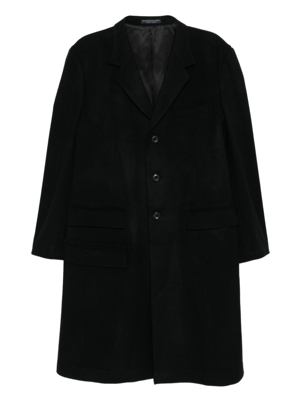 wool gabardine coat Highlights - Black - Shoulder pads - Chest welt pocket - Two side flap pockets - Central rear vent Imported Composition Outer: Wool 90%, Cashmere 10% Lining: Cupro 100% SIZE & FIT Model measurements Height 6 ft 2 in(1.88 m) Bust/Chest 34.25 in(87 cm) Hips 34.64 in(88 cm) Waist 26.77 in(68 cm) FittingInformation Designed for a slim fit, offering a comfortable fit that sits just away from the body The vented hem offers movement at the rear Made from a heavyweight non-stretch fabric Washing instructions Dry Clean Only
