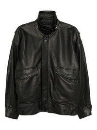 leather flight jacket Highlights - Black - Front zip fastening - Two side flap pockets - Buttoned-cuff sleeves Imported Composition Lining: Cotton 55%, Cupro 45% Outer: Calf Leather 100% SIZE & FIT Model measurements Height 6 ft 2 in(1.88 m) Bust/Chest 34.25 in(87 cm) Hips 34.64 in(88 cm) Waist 26.77 in(68 cm) FittingInformation Designed for a relaxed fit, this piece allows for comfort and movement when worn The elasticated hem allows for movement and a comfortable fit Soft leather has a supple and smooth construction offering some flexibility Washing instructions Specialist Cleaning