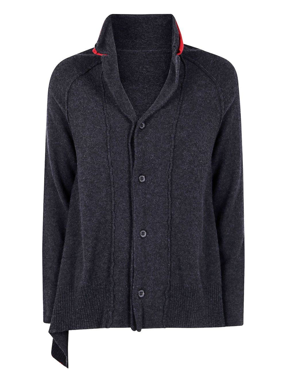 asymmetrical button cardigan Highlights - Charcoal grey - Red collar - Button front - Raglan sleeves - Asymmetrical hem - Wool knit Imported Composition Wool 100% Washing instructions Read Manufacturer Guidelines