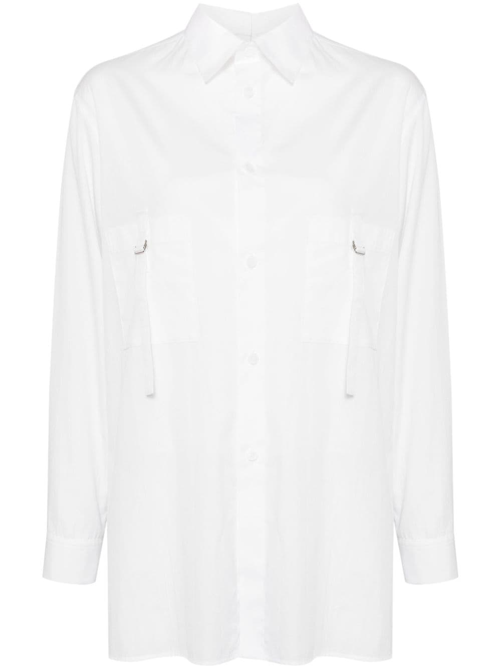 back-tucked open-tab shirt Highlights - White - Cotton - Decorative buckle detail - Rear button fastening - Side slits - Chest patch pocket - Classic collar - Long sleeves - Buttoned cuffs - Front button fastening - Curved hem Imported Composition Cotton 100%