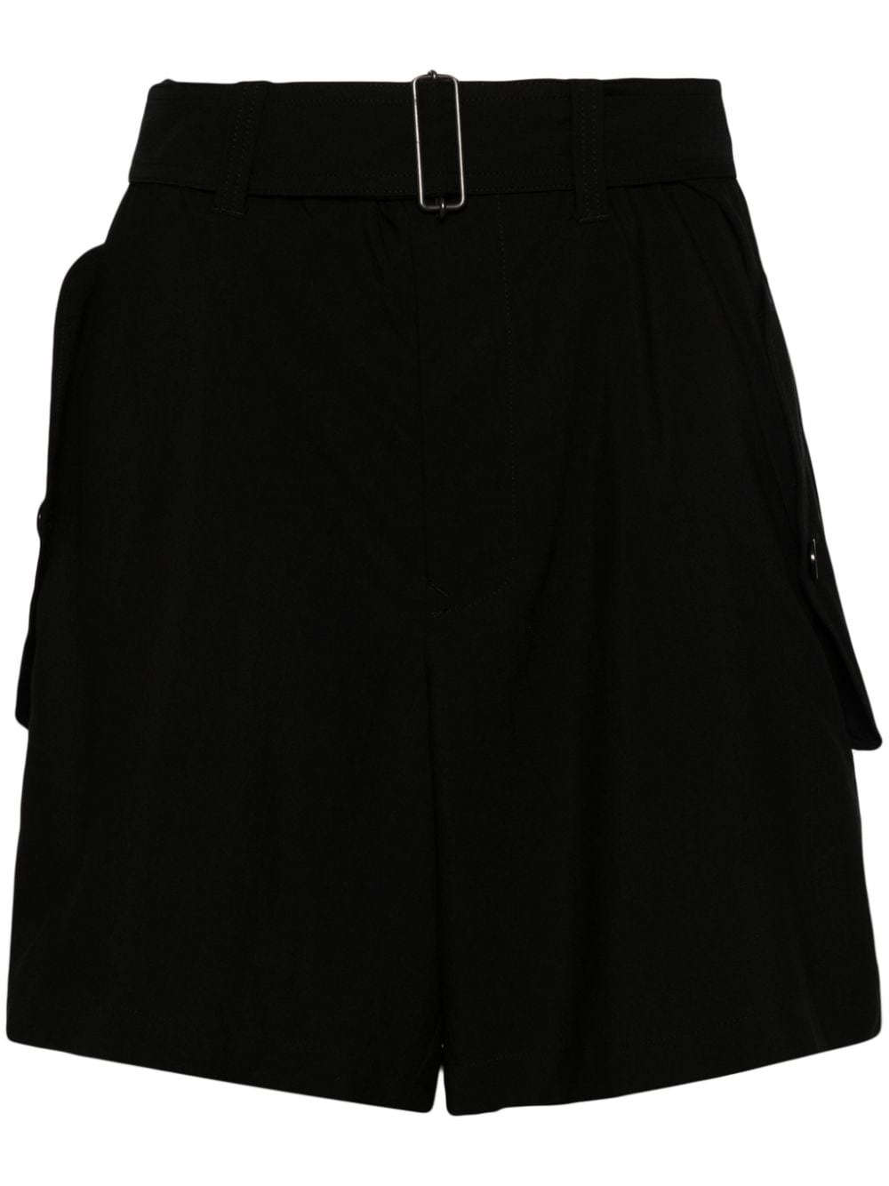 belted high-waisted shorts Highlights - Black - High-waisted - Belted waist - Elasticated drawstring waistband - Belt loops - Two side flap pockets - Thigh-length Imported Composition Rayon 67%, Cupro 33%