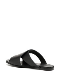 bucked leather sandals black leather decorative buckle detail almond toe slip-on style open toe Imported Composition Lining: Leather 100% Outer: Leather 100% SIZE & FIT Measurement HEEL 0.59 in(1.5 cm) Sole height 0.19 in(0.5 cm)