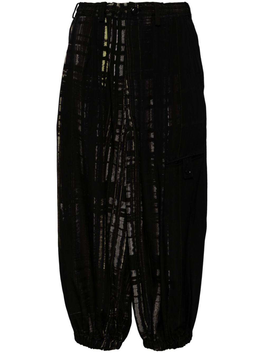 checked tapered trousers Highlights - Black/multicolour - Silk blend - Check print - High waist - Belt loops - Front button fastening - Tapered leg - Elasticated cuffs Imported Composition Cupro 59%, Rayon 35%, Silk 6%