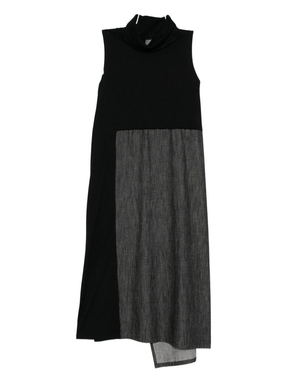 denim combination high neck dress Highlights - Black - Stand-up collar - Sleeveless - Central rear vent Imported Composition Cotton 100% Washing instructions Dry Clean Only