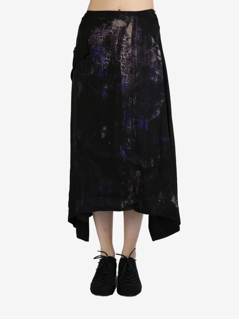 flower-pattern cut off-pocket midi skirt Highlights - Black - Concealed side zip fastening - Draped detailing - Asymmetric hem - Mid-calf length Imported Composition Cupro 100%