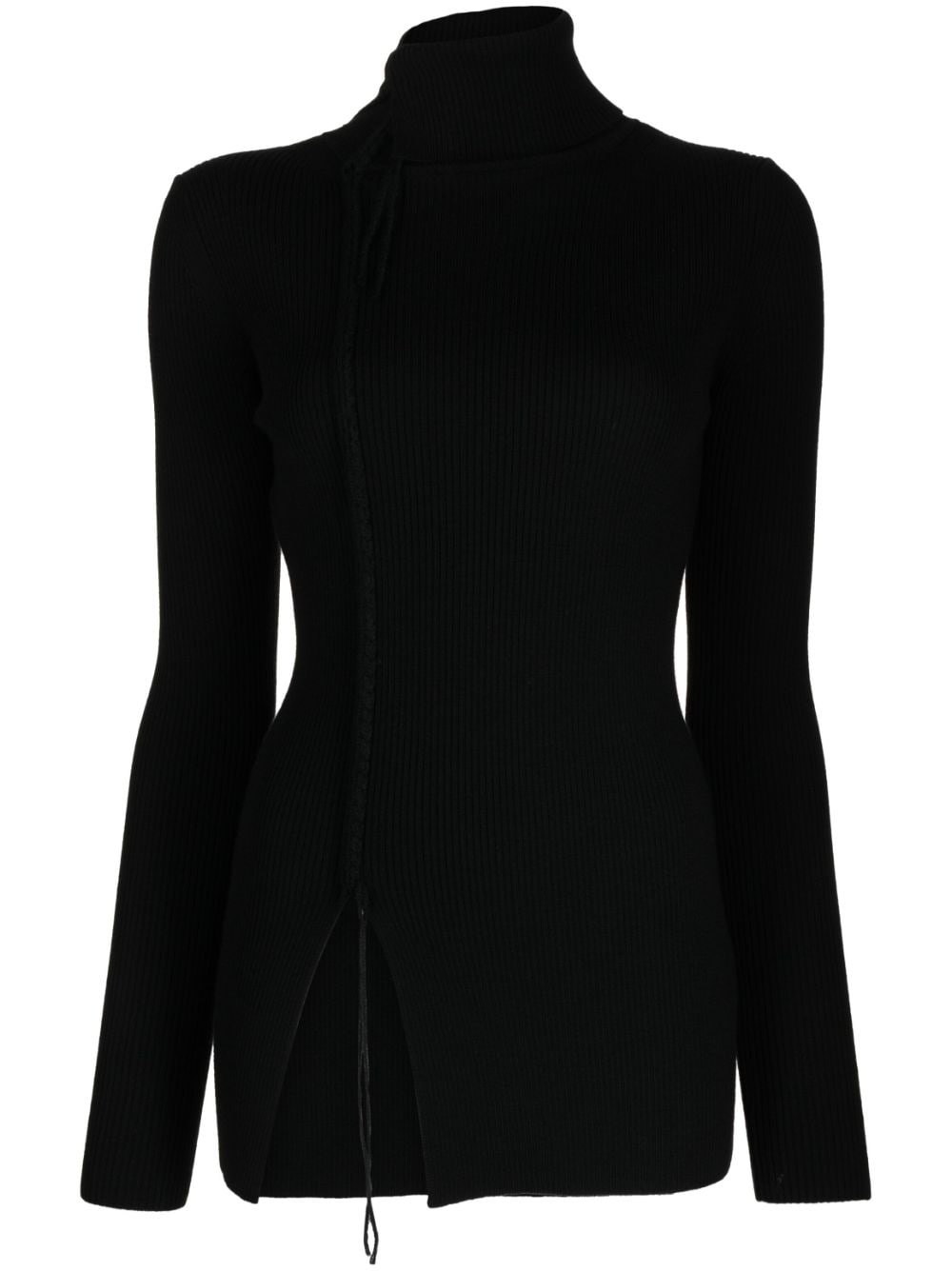 front-slit wool knitted top black wool front slit high neck long sleeves straight hem Imported Composition Wool 100%