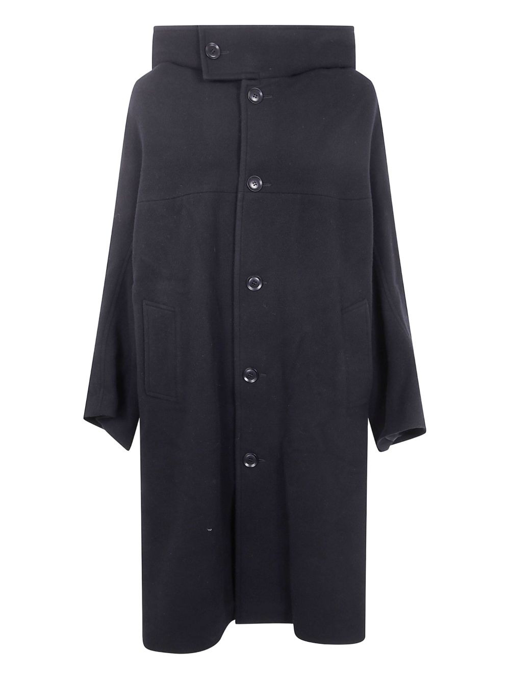 hooded button-down wool coat Highlights - Black - Wool - Hooded neck - Button fastening - Welt pockets Imported Composition Wool 100% Washing instructions Read Manufacturer Guidelines