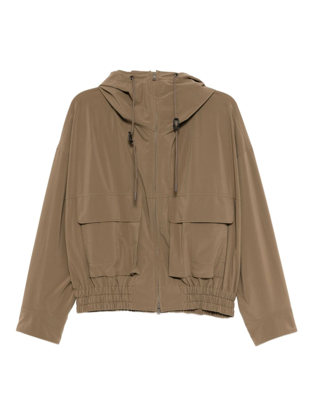 hooded jacket Highlights - Beige - Front zip fastening - Slouchy drawstring hood - Two front flap pockets - Elasticated hem Imported Composition Polyester 100% Washing instructions Dry Clean Only