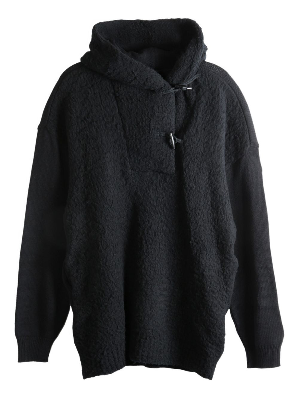 hooded toggle-fastening sweater Highlights - Black - Toggle fastening - Hooded neckline - Long sleeves Imported Composition Fabric 100% Washing instructions Read Manufacturer Guidelines