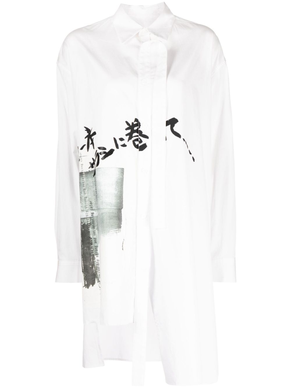 long-line graphic-print shirt Highlights - White - Cotton - Graphic print to the front - Pussy-bow collar - Front button fastening - Long sleeves - Buttoned-cuff sleeves - Asymmetric hem Imported Composition Cotton 100% SIZE & FIT Model measurements Height 5 ft 10 in(1.77 m) Bust/Chest 31.88 in(81 cm) Hips 33.85 in(86 cm) Waist 24.01 in(61 cm) Washing instructions Dry Clean Only