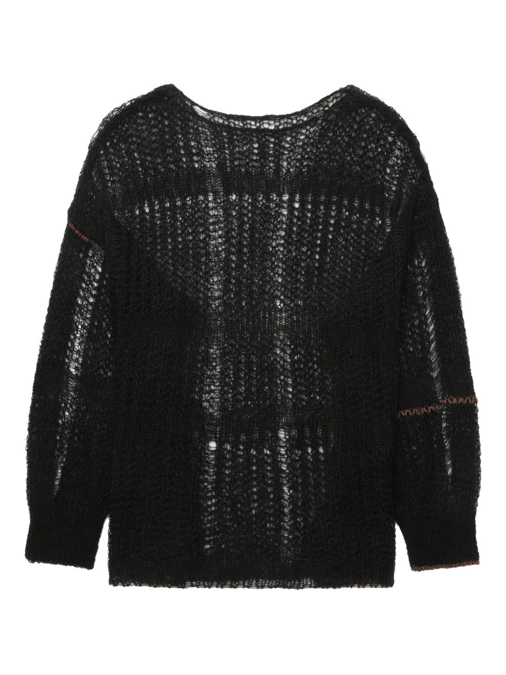 long-sleeved open-knit sweater Highlights - Black - Open knit - Long sleeves - Stitching details - Round neck Imported Composition Polyamide 41%, Mohair 30%, Wool 29% Washing instructions Read Manufacturer Guidelines