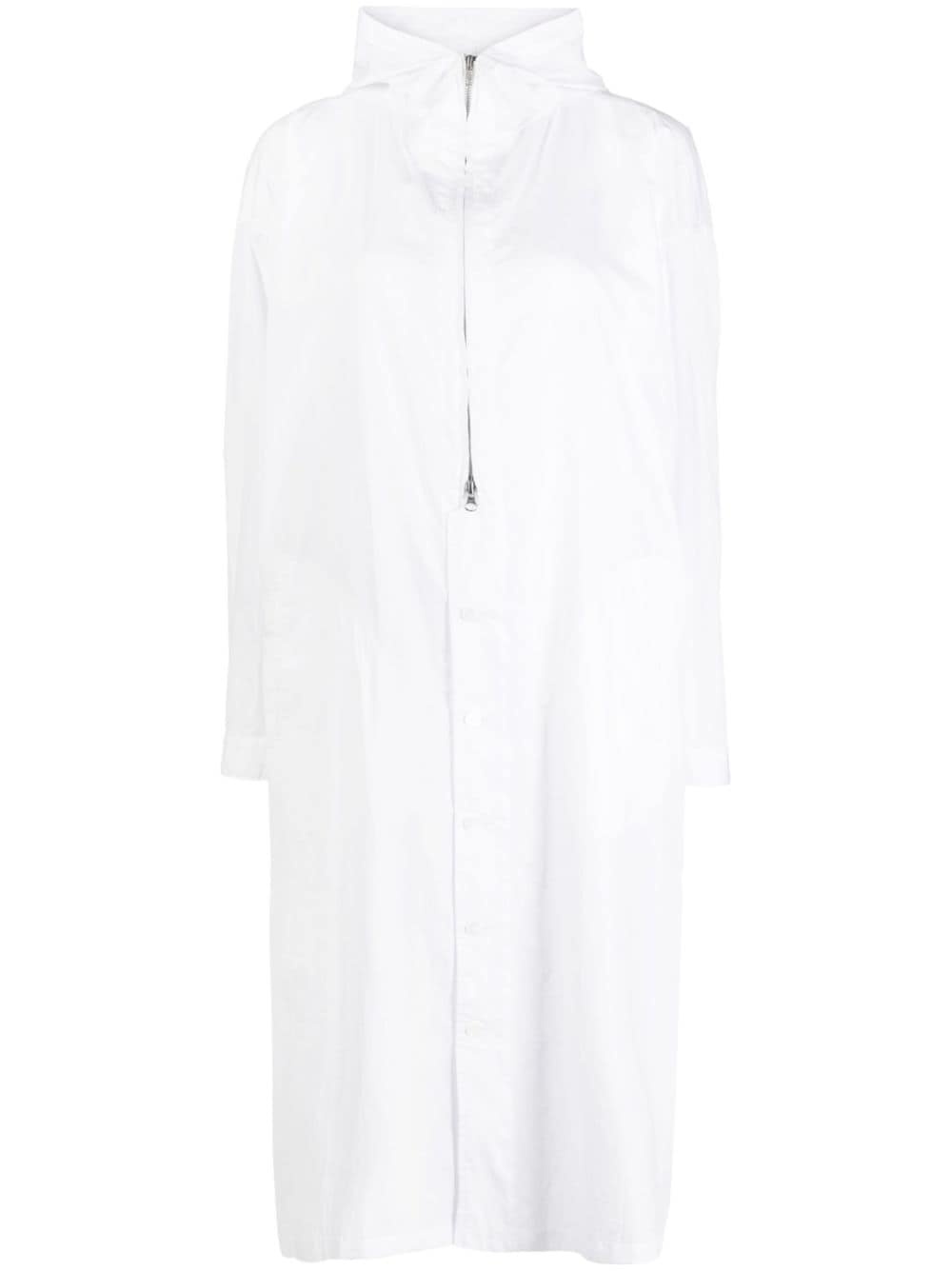 long-sleeves printed cotton coat Highlights - White - Cotton - Graphic print to the rear - Classic hood - Long length - Long sleeves - Oversize frame - Front button and zip fastening Imported Composition Cotton 100% SIZE & FIT Model measurements Height 5 ft 10 in(1.78 m) Bust/Chest 31.1 in(79 cm) Hips 34.25 in(87 cm) Waist 23.62 in(60 cm) FittingInformation Designed to be unstructured, offering a loose fit throughout Made from a midweight non-stretch fabric This piece fits true to size – take your usual size