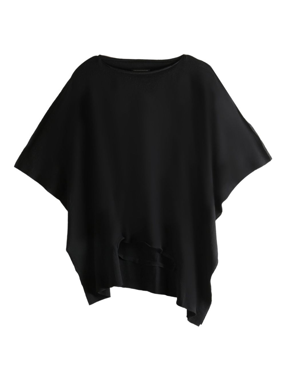 M-Dolman asymmetric draped top Highlights - Black - Boat neck - Three-quarter sleeves - Asymmetrical hem - Draped design Made in France Composition Fabric 100% Washing instructions Read Manufacturer Guidelines