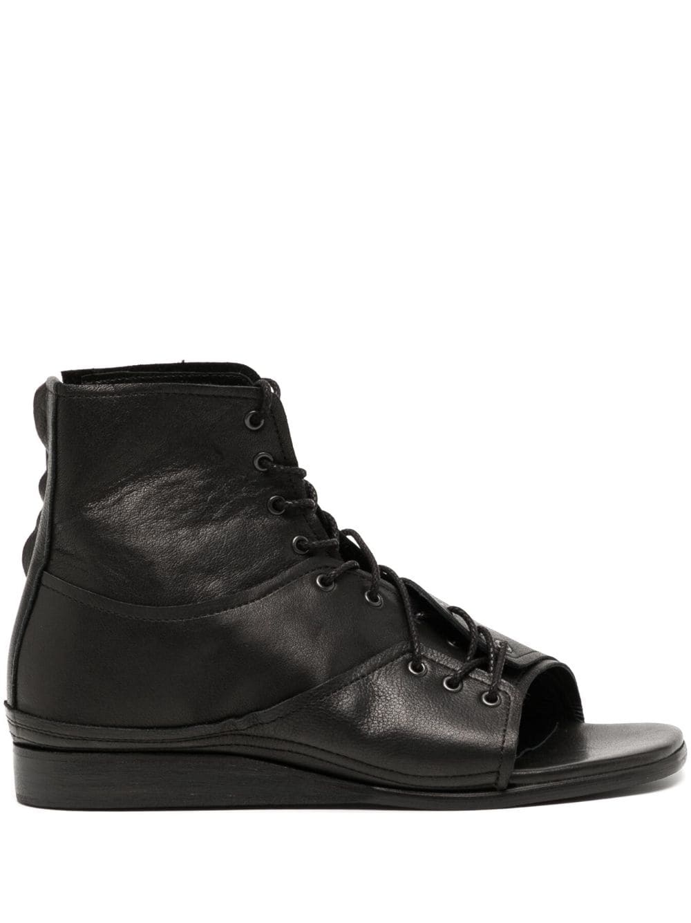 open-toe leather boots Highlights - Black - Leather - Panelled design - Open toe - Round toe - Front lace-up fastening - Rear zip fastening Imported Composition Lining: Leather 100% Outer: Leather 100%