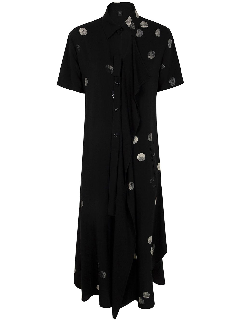 polka-dot dress Highlights - Black - Front button fastening - Classic collar - Short sleeves - Ruffled detailing Imported Composition Viscose 100%