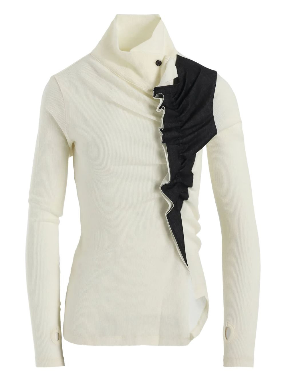 ribbed ruffled top Highlights - White Imported Composition Fabric 100% Washing instructions Read Manufacturer Guidelines