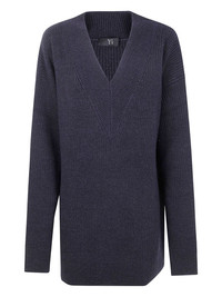 ribbed wool long sweater Highlights - Grey-blue - Ribbed knit - V-neck - Long sleeves - Straight hem Imported Composition Wool 100% Washing instructions Read Manufacturer Guidelines