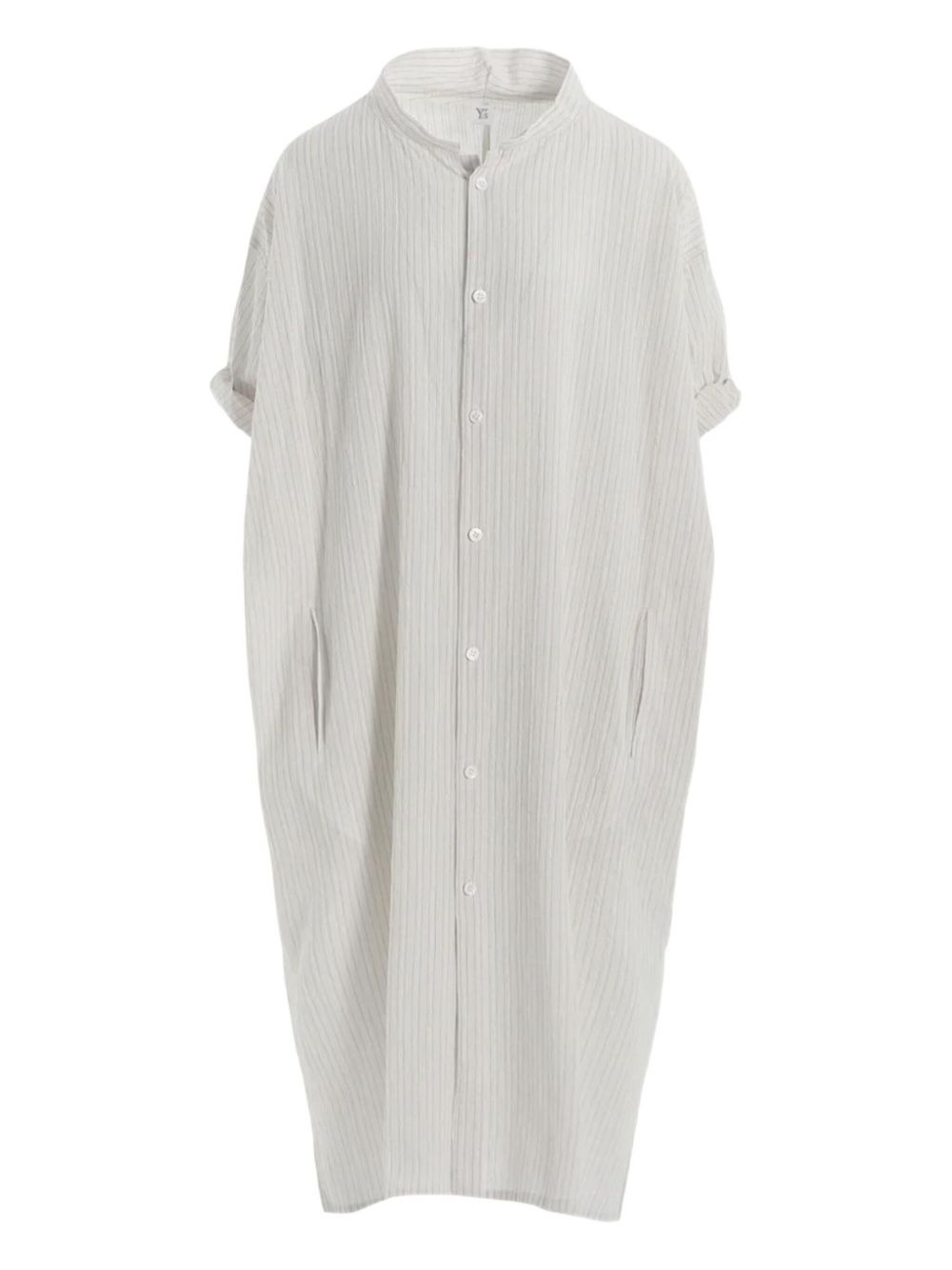 striped shirt dress Highlights - White - Vertical stripes - Short sleeves - Front button placket - Curved hem - Side slit pockets Imported Composition Cotton 100% Washing instructions Read Manufacturer Guidelines
