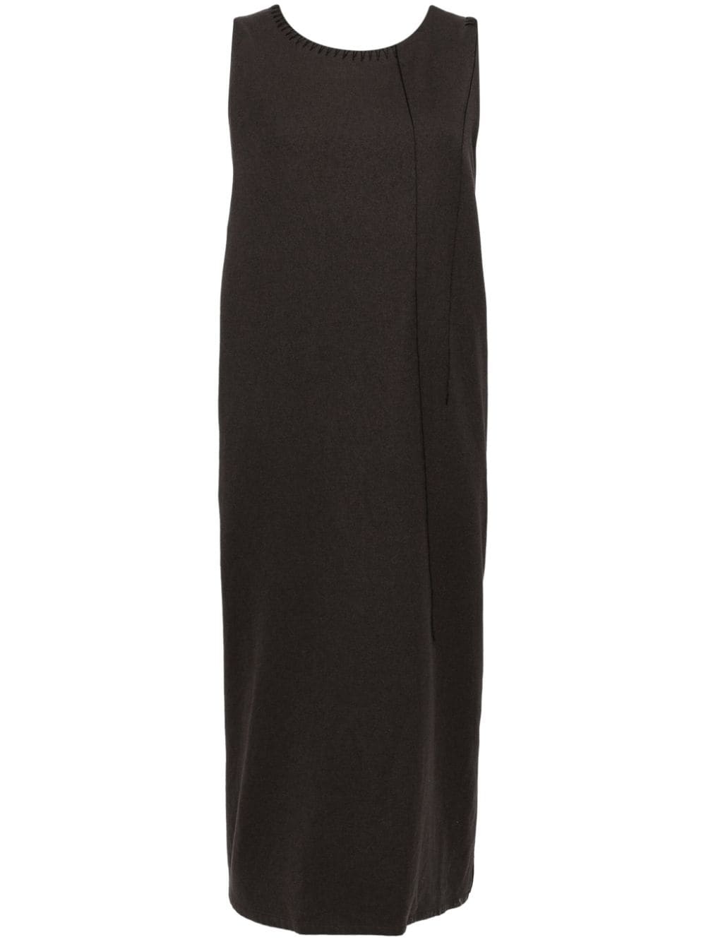 tonal-stitched dress Highlights - Chocolate brown - Wool blend - Tonal stitching - Front welt pocket - Crew neck - Sleeveless - Calf-length Imported Composition Wool 99%, Polyurethane 1% SIZE & FIT Model measurements Height 5 ft 9 in(1.76 m) Bust/Chest 31.1 in(79 cm) Hips 35.03 in(89 cm) Waist 24.4 in(62 cm) FittingInformation Designed to be unstructured, offering a loose fit throughout Made from a midweight non-stretch fabric