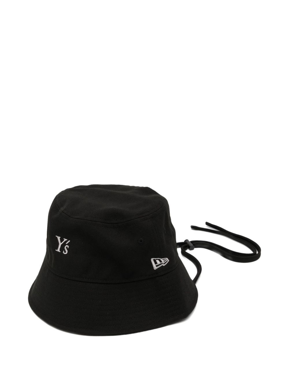 x New Era logo-embroidered bucket hat Highlights - Black - Drawstring fastening - Flat crown - Dropped narrow brim Imported Composition Polyester 100% SIZE & FIT Measurement BRIM 2.63 in(6.7 cm) CIRCUMFERENCE 24.4 in(62 cm)