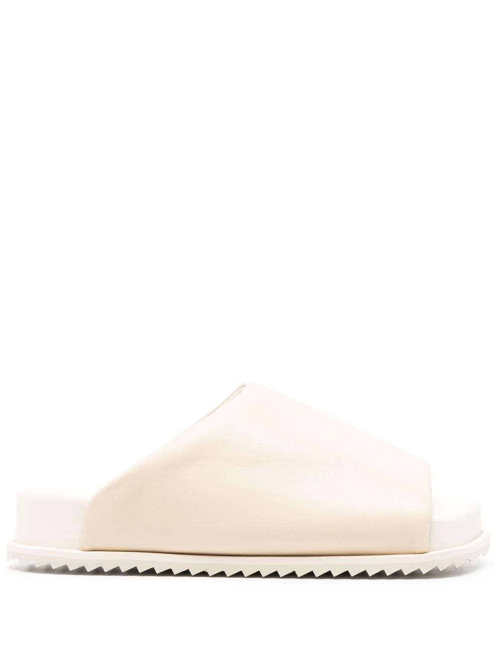 open-toe slip-on slides Highlights - Vanilla beige - Slip-on style - Open toe - Branded insole - Flat rubber sole Imported Composition Sole: Rubber 100% Outer: Rubber 100% Lining: Rubber 100% SIZE & FIT Measurement HEEL 1.57 in(4 cm) Sole height 0.98 in(2.5 cm)