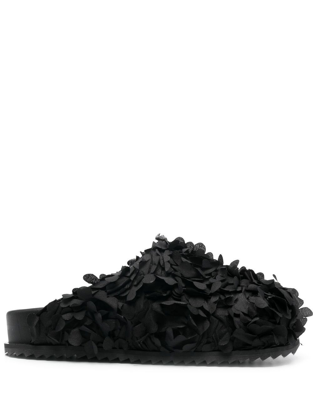 petal textured sliders black floral textured finish slip-on style Imported Composition Sole: Recycled TPU 70%, Thermoplastic Polyurethane (TPU) 30% Lining: Polyurethane 52%, Bamboo 29%, Cotton 19% Outer: Polyester 100% SIZE & FIT Measurement HEEL 1.18 in(3 cm) Sole height 1.18 in(3 cm) FittingInformation This piece fits small – take one size up